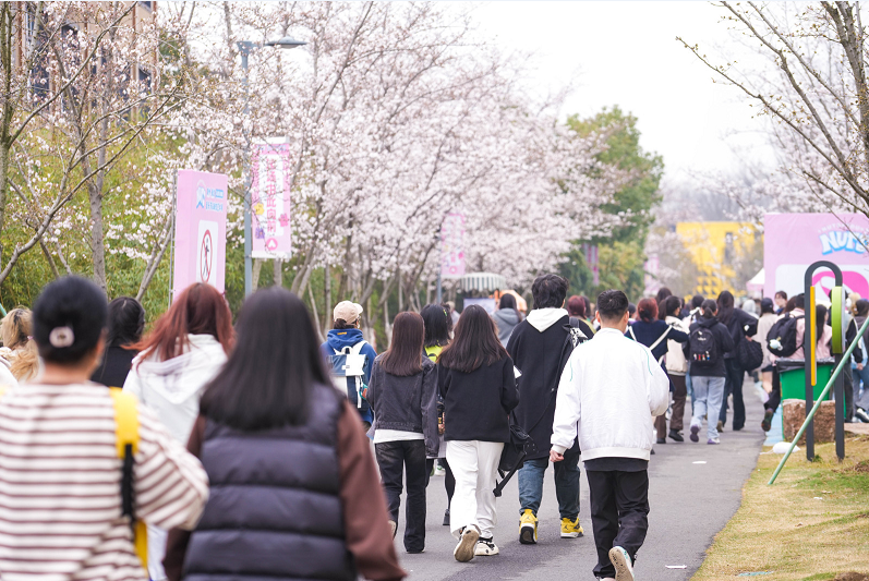 似乎是感受到了乐迷的热情,当天细雨微蒙,气氛到了便雨过天晴。更让人感到意外的是,园区之前一直含苞待放的樱花也在当天集体绽放,用最美的姿态迎接远方的客人。歌潮景美人靓,新龙NUTS音乐节在一片美好中顺利启幕。
