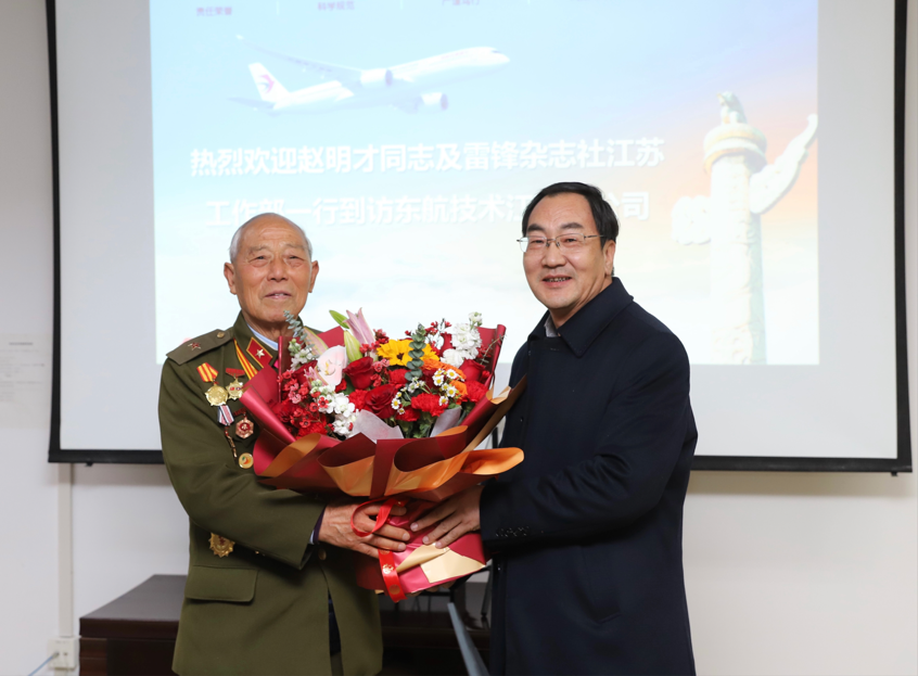 近日,东航技术江苏分公司组织开展了“学习雷锋精神 争做时代先锋”系列主题团日活动。雷锋同志生前战友赵明才,雷锋杂志社江苏工作部部长王一迪、雷锋杂志社江苏工作部通联部长姜海东,东航技术江苏分公司党委书记、副总经理杨文军,东航江苏公司群团工作部副部长、团委书记陈峘出席活动,东航技术江苏分公司、东航江苏公司地面服务部“启航”志愿者服务站、客舱服务部近30名团员青年参加活动。