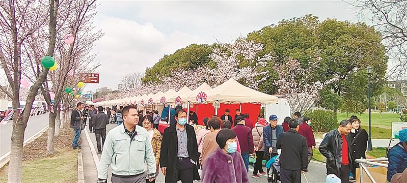 在浪漫樱花树下逛庙会是一种什么样的体验?3月26日—30日,焕新回归的净慧寺庙会,在无锡高新区(新吴区)的“樱花大道”——干城路(德昇路至近湖路段)、大溪港湿地公园内(六步港段)、净慧寺停车场共设置300个摊位,现场吸引了很多居民前来“轧闹猛”。