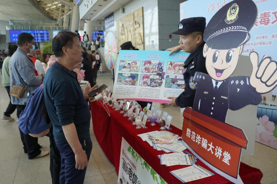 南京站派出所民警还向现场旅客分发防范电信诈骗宣传页,通过展板宣传和案例宣讲的形式,向旅客讲解了出行中常遇到的电信诈骗套路,增强旅客防范意识。