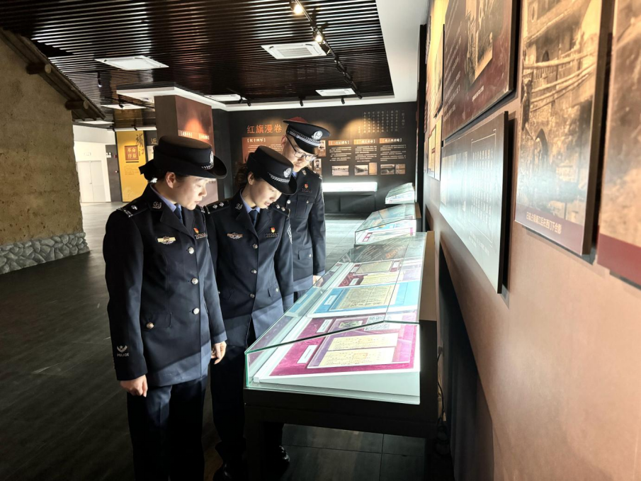 民警参观弯腰沟革命纪念馆