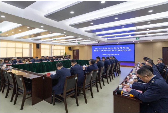 芳菲四月,春风有信,又迎来了一年税收宣传月。4月1日下午,盐城市税务局举办第二届特约监督员聘任仪式,现场聘请来自不同行业、不同职业的10名代表担任特约监督员,由此拉开第33个全国税收宣传月大幕。市局党委书记、局长卢李华出席仪式并讲话。市局党委委员、纪检组组长周光炜,市局党委委员、总会计师吴俊出席仪式。市局二级高级主办严汝青主持仪式。