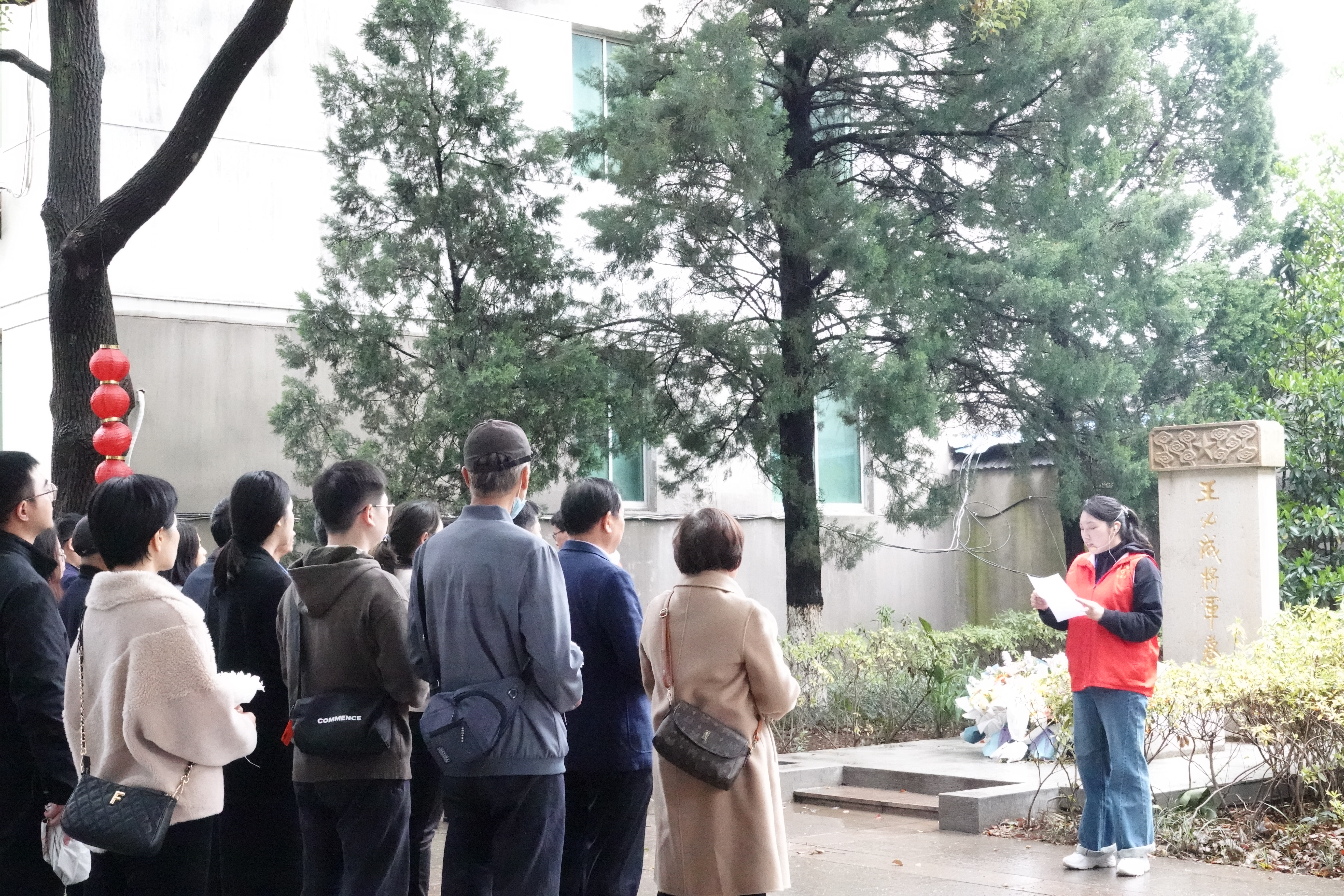 参观结束后,党员同志们步出纪念馆,来到王必成将军墓地,开展清明祭扫“缅怀革命先烈,身怀感恩前行”主题实践活动。碑前,大家依次给王必成将军敬献白花、默哀致敬,聆听将军的战斗故事,深刻领悟革命先辈不畏艰难险阻、敢于胜利的强大精神力量。