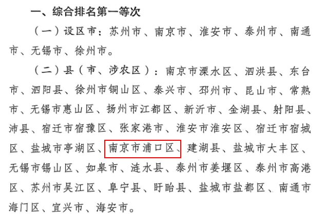近日,中共江苏省委农村工作领导小组印发文件通报了2023年度全省乡村振兴实绩考核结果,浦口区再次位列县(市、涉农区)综合排名第一等次。这是浦口区连续三年荣获全省乡村振兴战列实绩考核第一等次。