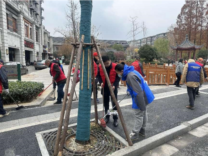 图为三分局“红枫”志愿小队联合晓庄社区开展卫生大扫除活动