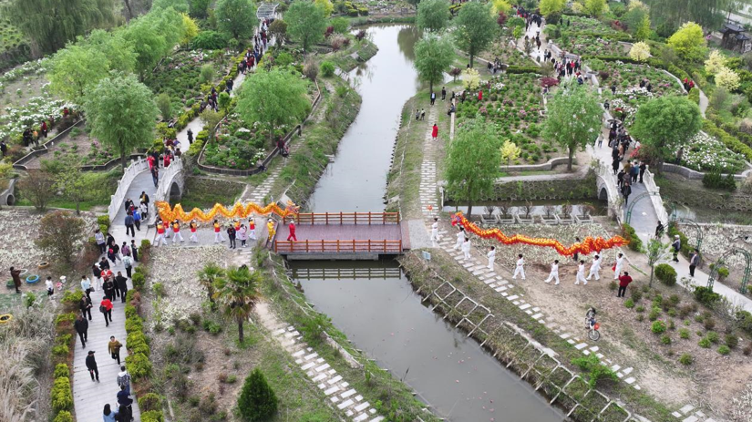 开园当日,在铿锵有力、热闹非凡的腰鼓和舞龙等民俗表演中拉开序幕,游客们成群结队,在花海流连忘返、拍照打卡。这片姹紫嫣红的花海,以独特的魅力成为吸引游客驻足流连的绝佳去处。