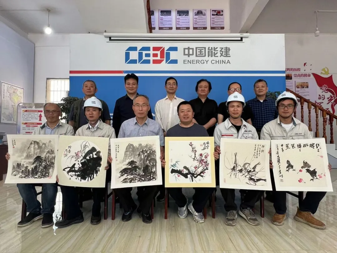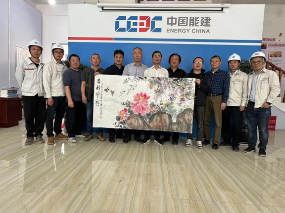 4月12日至13日,在中国能建江苏院工会主席王斌、职能分工会主席任治军,西南分公司总经理王磊、副总经理徐君民的陪同下,江苏省中国画学会常务副会长韩显红、副理事长金友功、副会长张广才、副会长兼秘书长翟优,常务理事董雷、包信源一行走进贵州镇宁县本寨风电场项目EPC工地,向奋战在一线的电力员工送上囯粹艺术文化大餐。