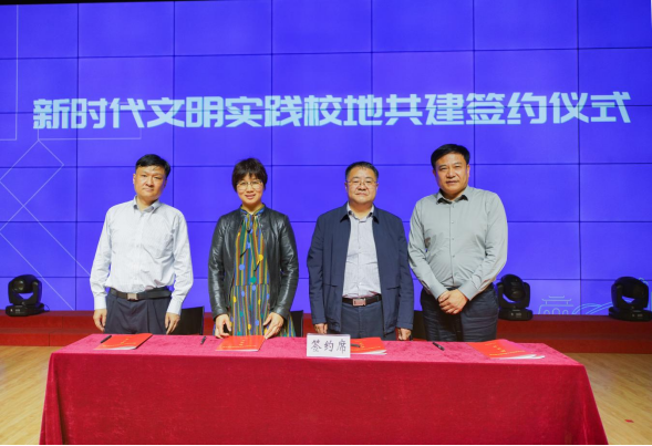 活动中,浦口区文明办与驻区三所高校——南京审计大学、江苏卫生健康职业学院和江苏省司法警官高等职业学校签订校地共建协议,通过共建一支队伍、共育一个项目、共培一个基地、共设一个课堂、共研一个教材、共搭一个平台,开展丰富多彩的文明实践志愿服务、好人故事道德讲堂等多形式的共建活动,实现“区校互动、双向受益、共同提高”的共建目标。南京市文明办专职副主任赵杰,浦口区委常委、宣传部部长范明辉,市文明办道德建设指导处处长林峻为校地共建“文明实践伙伴”揭牌。驻区高校代表南京审计大学润园书院的学生们还特别带来朗诵节目《让志愿之花常开》。