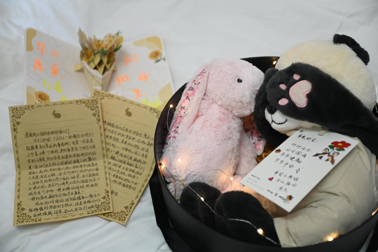 “太阳下山有月光,月光落下有朝阳,亲爱的小朋友加油……”赵雪以手写祝福信的方式,邀约小患者及家人相遇春风里。“我是医务工作者,同时也是一位母亲,一想到自己能够挽救一条生命,付出再多都值得!”赵雪笑着说道,家人十分支持自己的决定,9岁的儿子也为妈妈的“英雄之举”骄傲,并一同制作了礼物,希望远在北京的“另外一个她”早日康复。