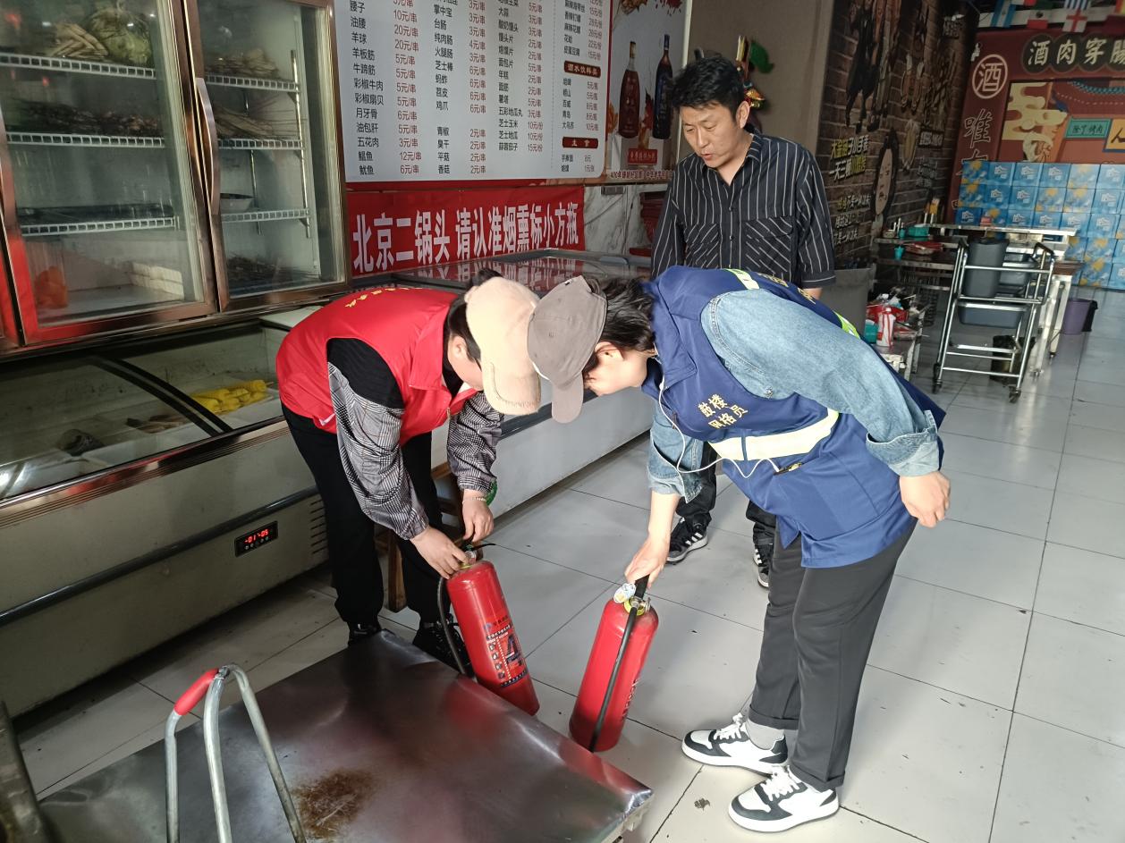 “大哥,你们商铺里的灭火器有没有?”滨河社区网格员联合党员志愿者巡查辖区商铺、幼儿园等“九小场所”,向辖区居民科普消防安全知识、宣传消防相关法律法规,详细了解商户商铺、幼儿园等“九小场所”的负责人是否定期检查消防灭火器,并现场演示灭火器使用方法,进一步强化商户、幼儿园工作人员的消防安全意识。