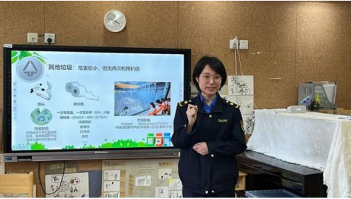 活动现场,执法队员通过PPT解说、图片和视频展示的方式,直观地从“什么是垃圾分类”“为什么要进行垃圾分类”“如何正确进行垃圾分类”“投放垃圾的注意事项”等方面进行了详细讲解,为小朋友们普及了垃圾分类的基础知识。