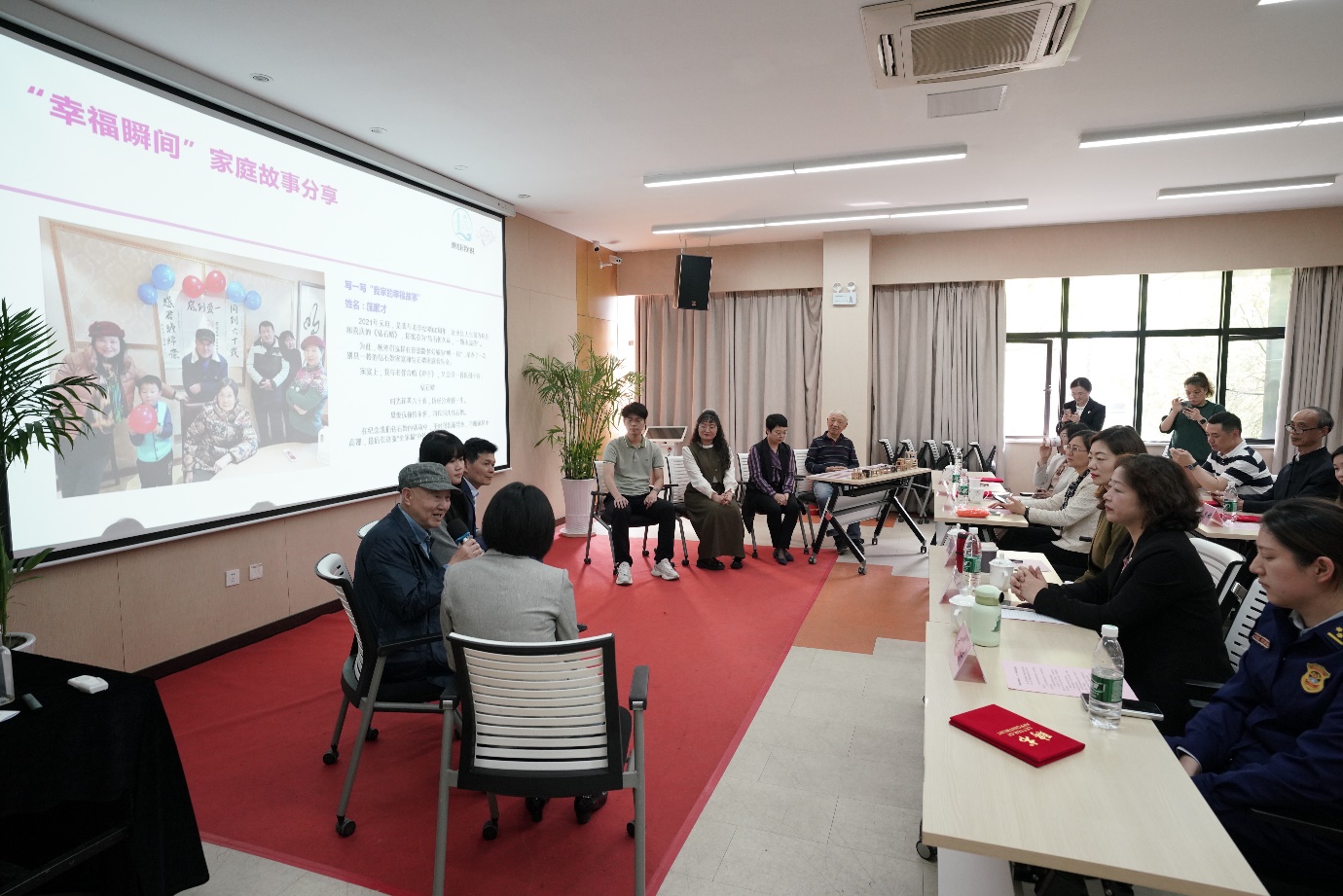 活动现场,“幸福瞬间”家庭故事访谈环节深深打动了在场的每一个人。钻石婚老夫妻从青春到白头、相依相伴63载;女儿入职之际,父亲给女儿的手写家书;13岁女儿掌勺年夜饭……7位代表用朴实无华的语言,分享了他们家庭中平凡而又温暖的瞬间,让人既羡慕又感动。分享结束后,秦淮区妇联领导为“幸福瞬间”家庭故事分享作品颁奖。