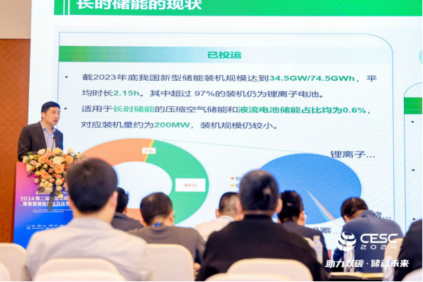 4月24日,CESC2024第二届中国国际储能大会暨智慧储能技术及应用展览会大会专题活动之长时储能技术应用及发展专题论坛在南京举办。现场,与会嘉宾共同探讨长时储能技术的最新应用与未来发展,为推动新能源及储能技术的持续创新和产业升级贡献智慧和力量。江苏省电力设计院综合能源工程公司市场开发部商务经理周江山主持论坛。
