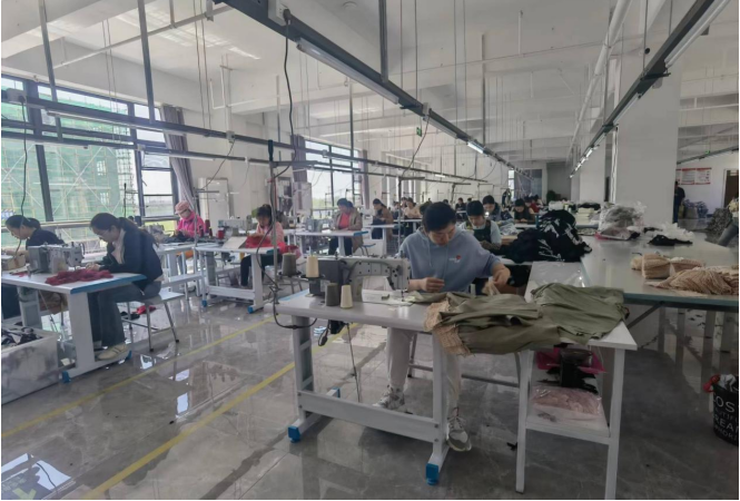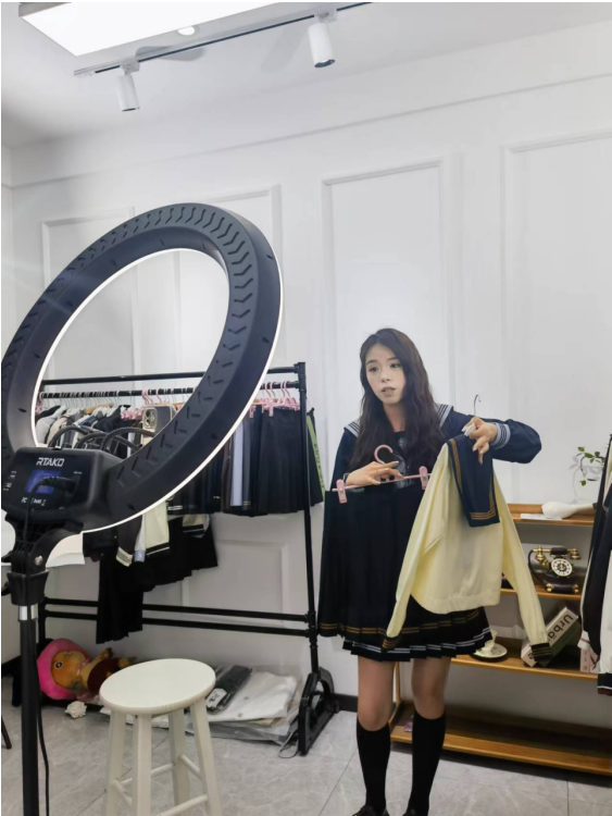 4月25日,位于连云港市灌云县东城区的主题服饰产业园,一边是午夜魅力制衣、伊影服饰、暴妃工厂生产车间工人们正在争先恐后制作服饰,另一边直播间线上销售也异常火爆。这是主题服饰产业园生产销售的一个缩影。