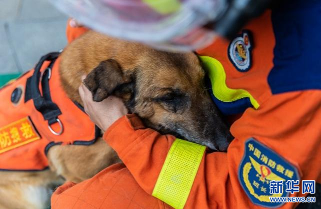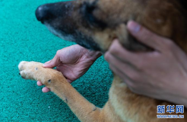 多年前,因患有耳疾,大毛失去了一只耳朵。由于搜救工作表现出色,且还具备工作能力,年迈的大毛今年才正式申请退休。蒋龙伟说:“大毛把青春献给了消防搜救。它退休了,我给它养老!”(摄影:张梦 文案:李南丹 视频:杨琦 )