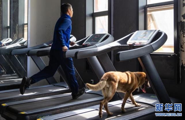 大毛和训导员蒋龙伟一起在跑步机上慢跑