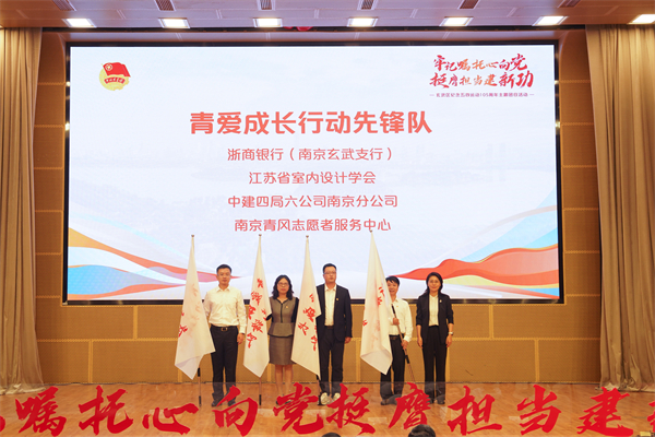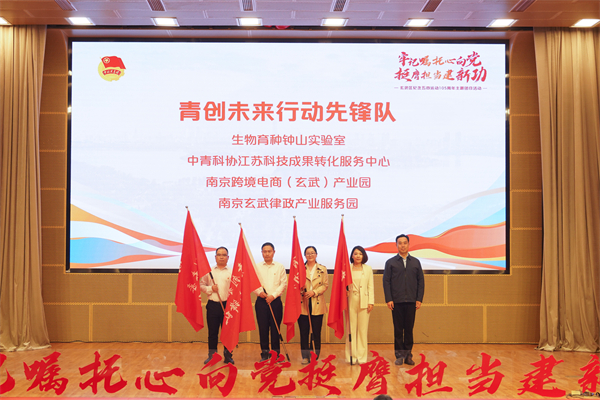荣飞、闵一峰共同启动“玄武青年建功行”五大行动,相关区领导分别为“青思领航”“青创未来”“青爱成长”“青玄志愿”“青春视界”五大行动先锋代表授旗。