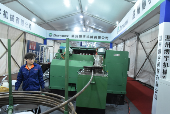 邱永寿介绍,本次展会占地5000多平方米,120多家企业参展,来自浙江、广东、河南和临近的东台、姜堰等地,展销生产紧固件制品配套设备约占40%左右。其中高精尖端设备类有10多家。走进展会现场,各种设备现场“工作”,发出隆隆的声响。