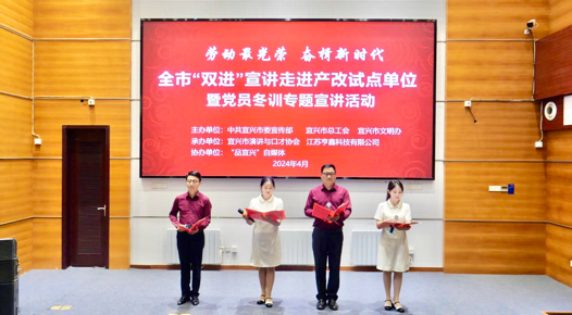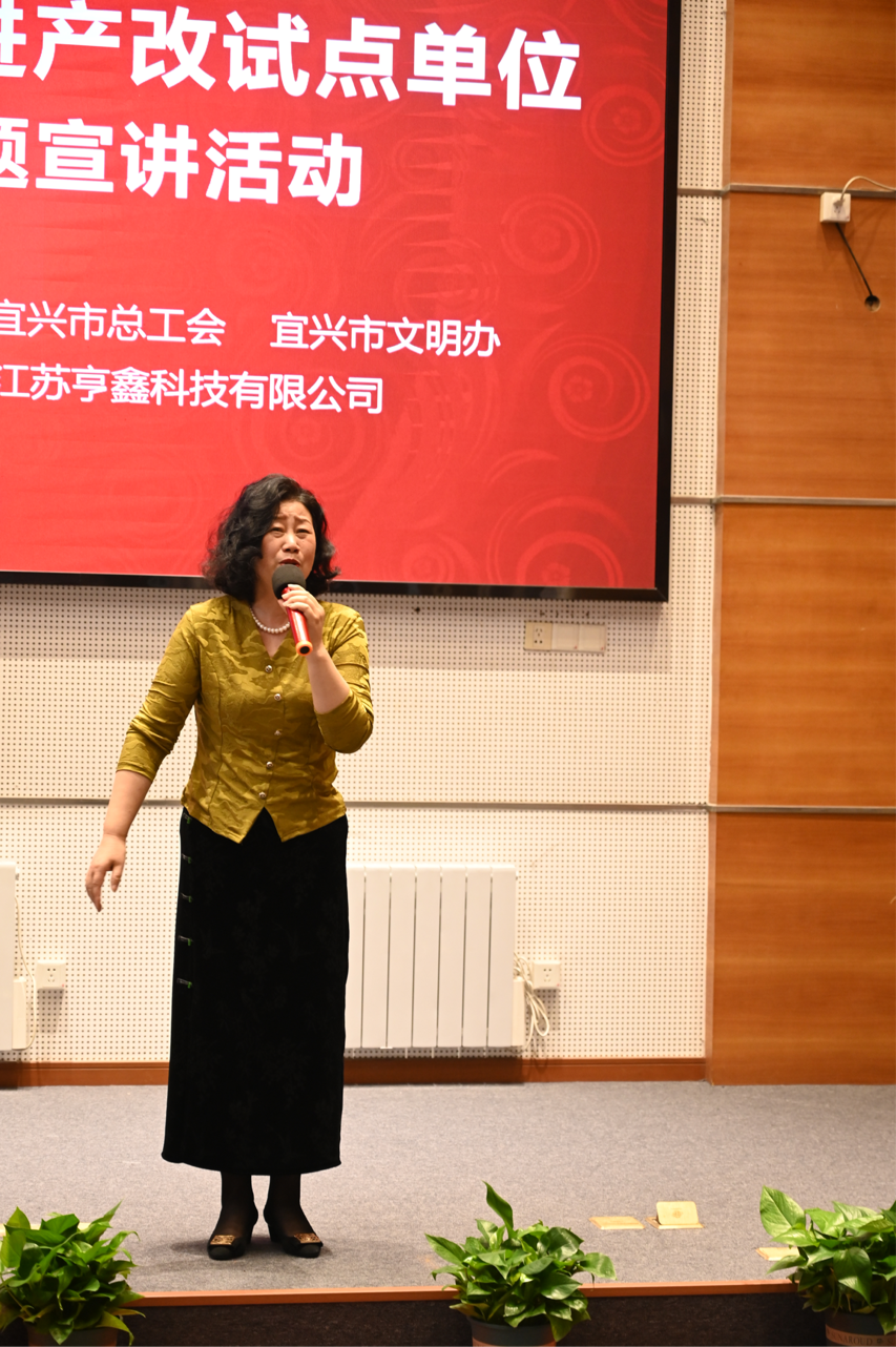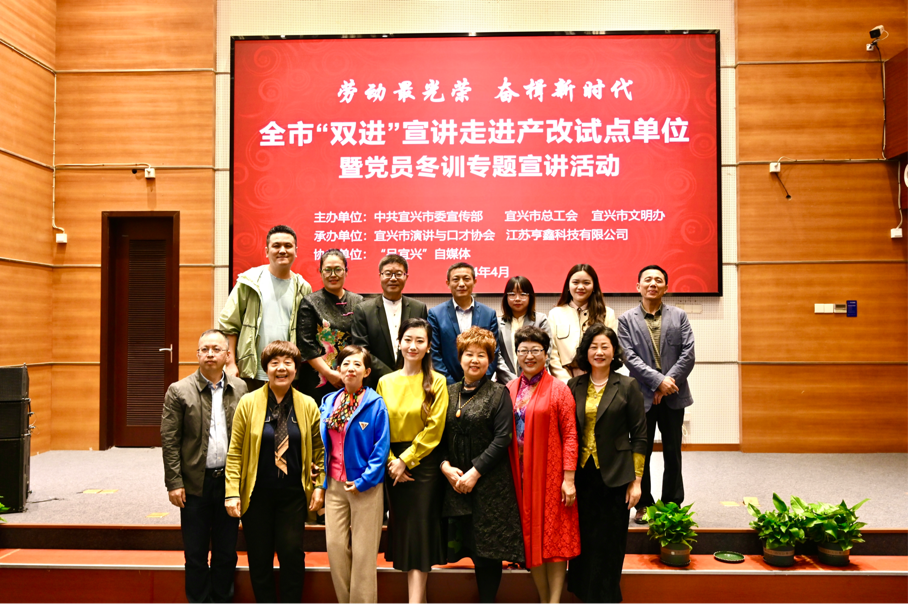 4月28日下午,由中共宜兴巿委宣传部、宜兴市总工会、宜兴市文明办主办,宜兴市演讲与口才协会、江苏亨鑫科技有限公司承办,“品宜兴”自媒体协办的“劳动最光荣 奋楫新时代”全市“双进”宣讲走进产改试点单位暨党员冬训专题宣讲活动在江苏亨鑫科技有限公司举行。宜兴市委宣传部、宜兴市总工会、宜兴市文明办相关科室负责人,各镇街道(园)工会代表以及相关企业职工代表参加活动。