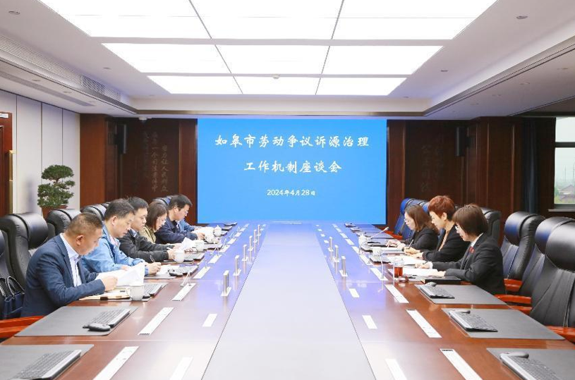 为有效化解劳动争议纠纷,2024年4月28日,如皋法院牵头组织市司法局、市人力资源和社会保障局、市总工会、市工商联四家单位会商劳动争议诉源治理联动工作机制实施方案,部分人大代表、政协委员应邀参会。