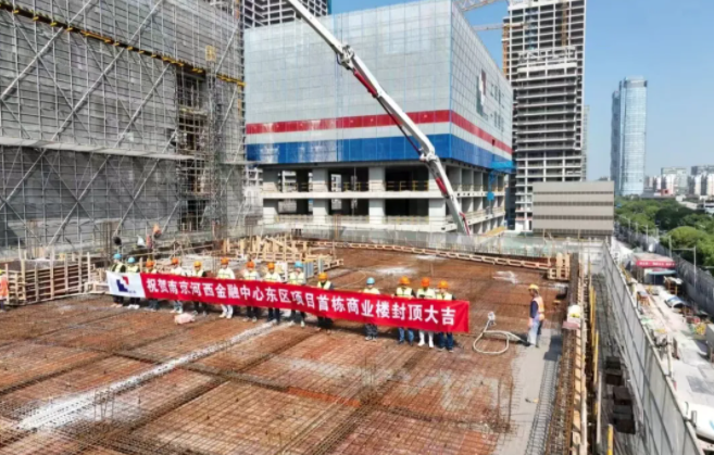 继4月16日南京河西金融中心项目西区成功封顶,5月12日,河西金融中心项目ABC区的商业楼C05栋也正式迎来了屋面浇筑的重要时刻,这标志着项目首栋商业楼主体结构圆满封顶。C05栋高15.6米,建筑面积2480平方米,作为商业购物中心,将为周边居民提供便捷与舒适的购物体验。
