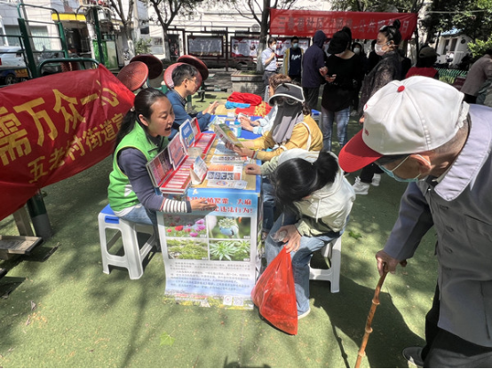 在爱卫广场,五老村街道邀请了派出所民警详细为居民讲解《禁毒法》,毒品的种类特征,吸毒的危害,让居民正确地认识毒品,树立健康积极的人生观和价值观,同时引导居民积极参与禁毒宣传工作,号召周围的亲朋好友一起学习禁毒知识,一起抵御毒品的侵袭。