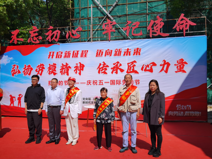 为弘扬劳模精神,彰显五老风采,丰富广大居民的精神文化生活,近日,五老村街道文化站、五老村街道工会携手淮海路社区联合举办了“弘扬劳模精神 传承匠心力量”红五月广场活动,来自各行各业的劳模工匠代表、侨眷、侨属、城市治理公众委员群众代表欢聚一堂,共同庆祝光荣的五月。