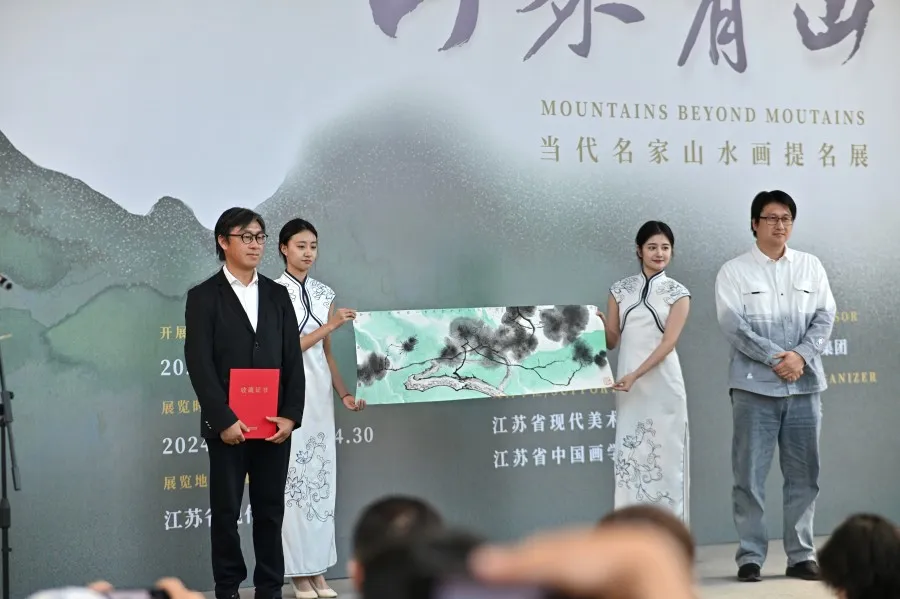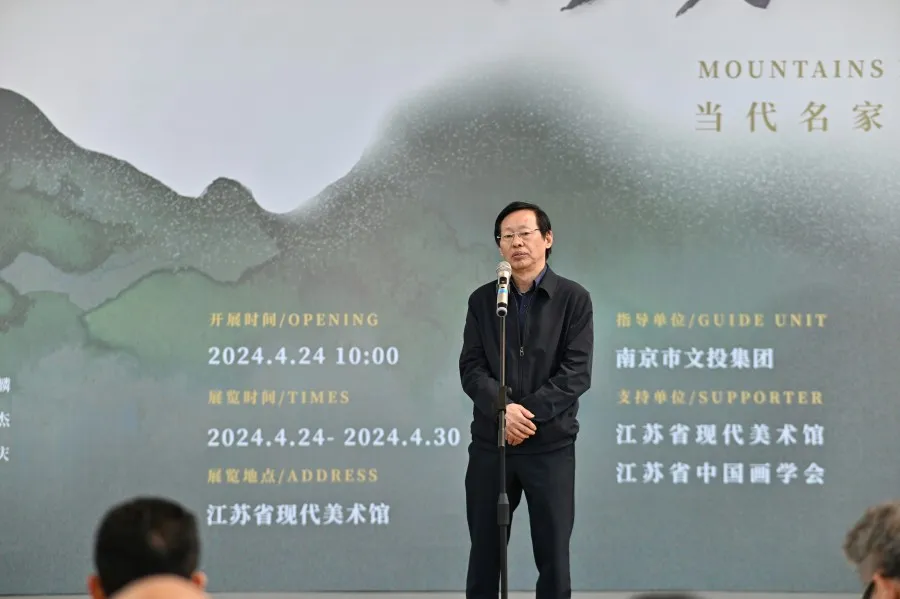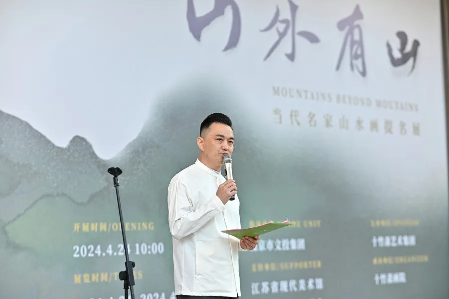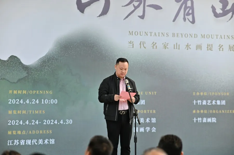 “老树新花,十年耕耘”。适逢十竹斋画院成立十周年,由南京市文投指导,江苏省中国画学会、江苏省现代美术馆支持,十竹斋艺术集团主办,十竹斋画院承办的金陵山水四百年系列活动首序“山外有山——当代名家山水画提名展”,于2024年4月24日上午在江苏省现代美术馆1号展厅开幕。