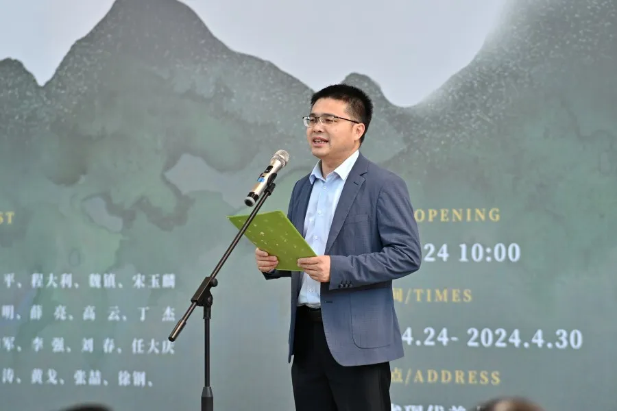 南京市文投集团党委委员、副总经理王鑫鑫致欢迎词。他表示,十竹斋画院的创立和发展,是十竹斋人推进文化自信自强,铸就社会主义文化新辉煌的创新探索,“未来,让我们共同期待更多的美好作品和艺术活动,继续在艺术的道路上携手前行。”