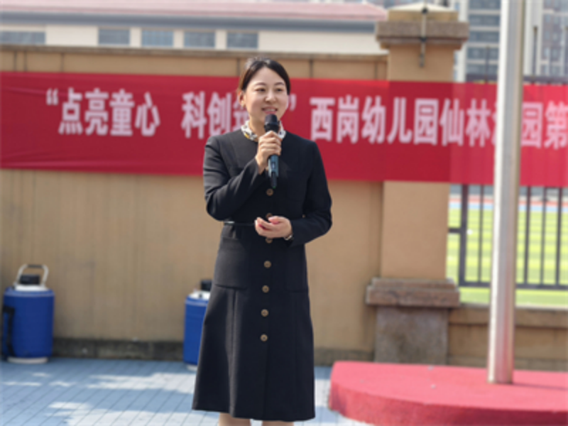 接下来,王园长在本次开幕式中进行了致辞,王园长鼓励每一位幼儿积极参加科学创新活动,共同感受科技的有趣和神奇,让每一位西幼仙林湖园的孩子们都能成为“现在的小玩家,未来的大科学家”。