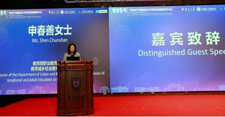 申春善在致辞中回顾了我国在学习型城市建设、全民终身学习、学习型社区和组织建设、数字化赋能学习型城市建设方面所做的努力与成效。她提出,下一步将积极响应国际倡议,结合“国家教育数字化战略行动”,推动全民终身学习的学习型城市建设。