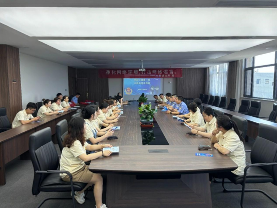 近日,扬中市公安局八桥派出所深入辖区江苏吉庆管材有限公司开展打击整治网络谣言座谈会,为企业员工送上“防范网络谣言”的普法教育课,进一步提升广大群众识谣、辨谣、防谣的能力。