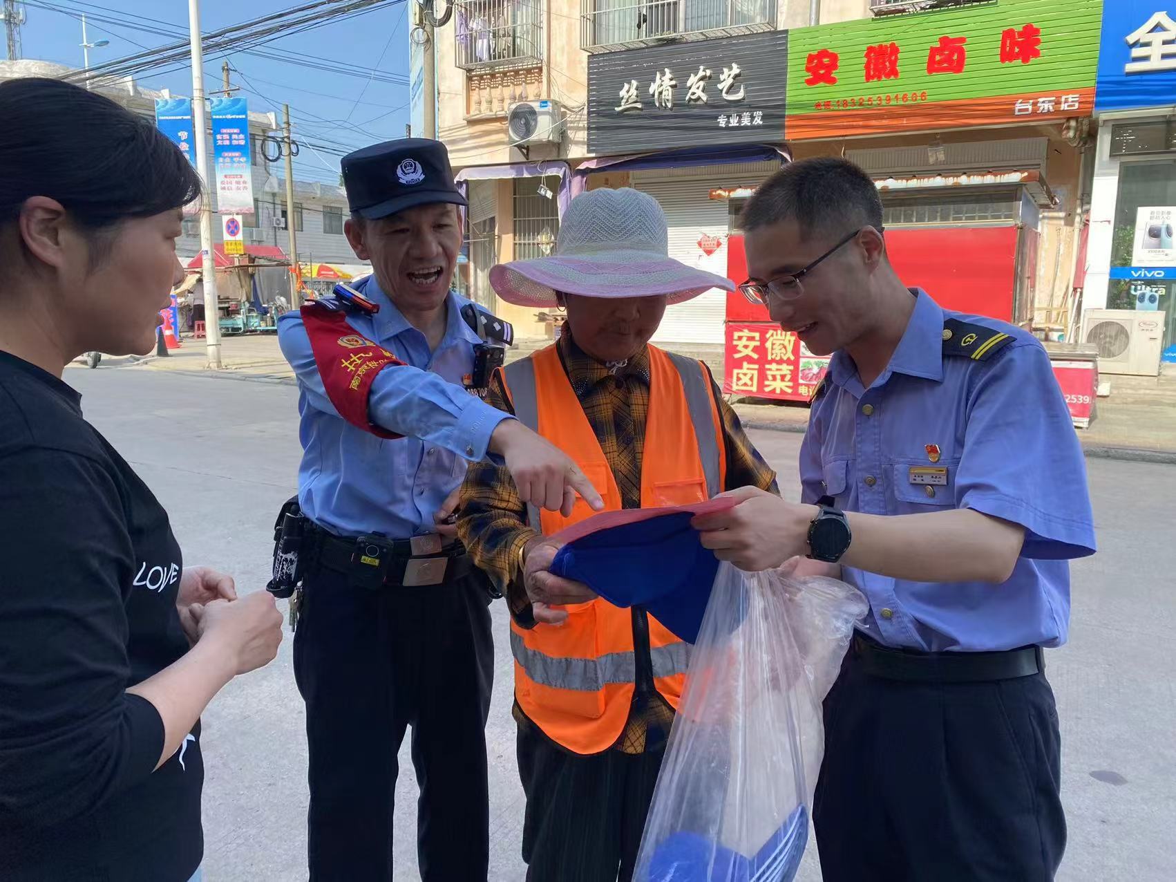“大妈,送您一个袋子,上面有铁路安全知识和报警电话,如果您发现铁路线上有障碍物、塌方等异常情况,请立即联系我们……”民警一边发放宣传物品,一边向沿线村居和集市上过往群众进行宣讲。