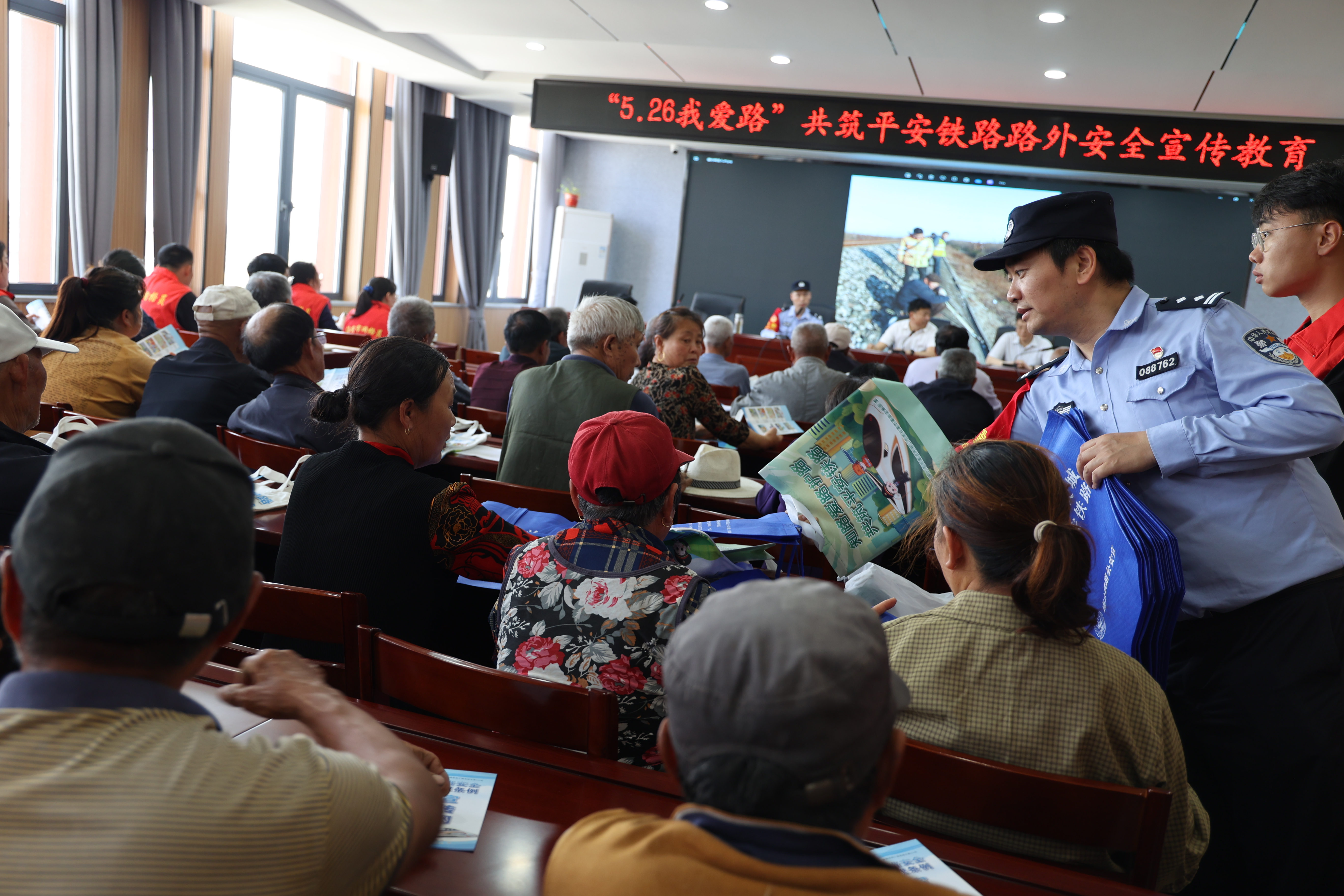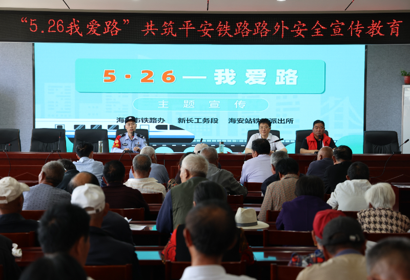 在自由村会议室里,海安站派出所民警徐伟正向村民们讲解翻爬护栏、击打列车、放置障碍物等行为对铁路线路和列车运行造成的危害。民警用通俗易懂的语言,结合以往案例,将法律法规融入其中,给村民们讲清维护铁路安全的重要性。