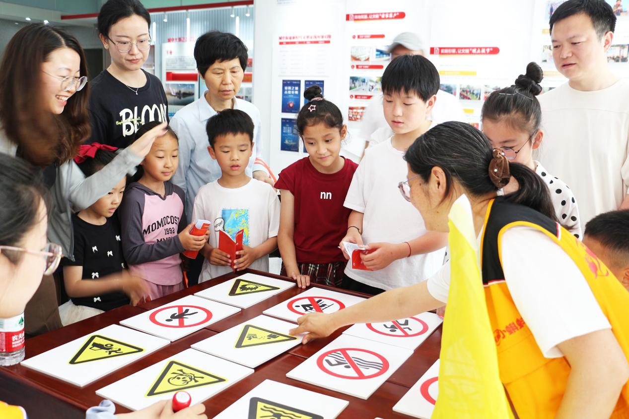 “这个标识是什么意思?”“禁止在深水区游泳!”在街道一楼大厅内,安全守护嘉年华集章打卡活动吸引了不少小朋友参加。