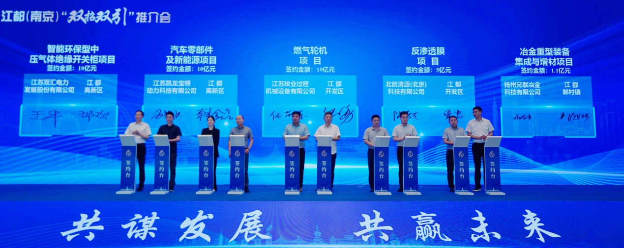 会议搭台、经贸唱戏。当天的“双招双引”推介会现场,总投资10亿元的智能环保型中压气体绝缘开关柜项目、总投资10亿元的燃气轮机项目以及总投资5亿元的反渗透膜项目等20个项目现场签约。这一批项目规模体量大、质量结构好、带动能力强,将进一步助推江都区经济高质量发展。