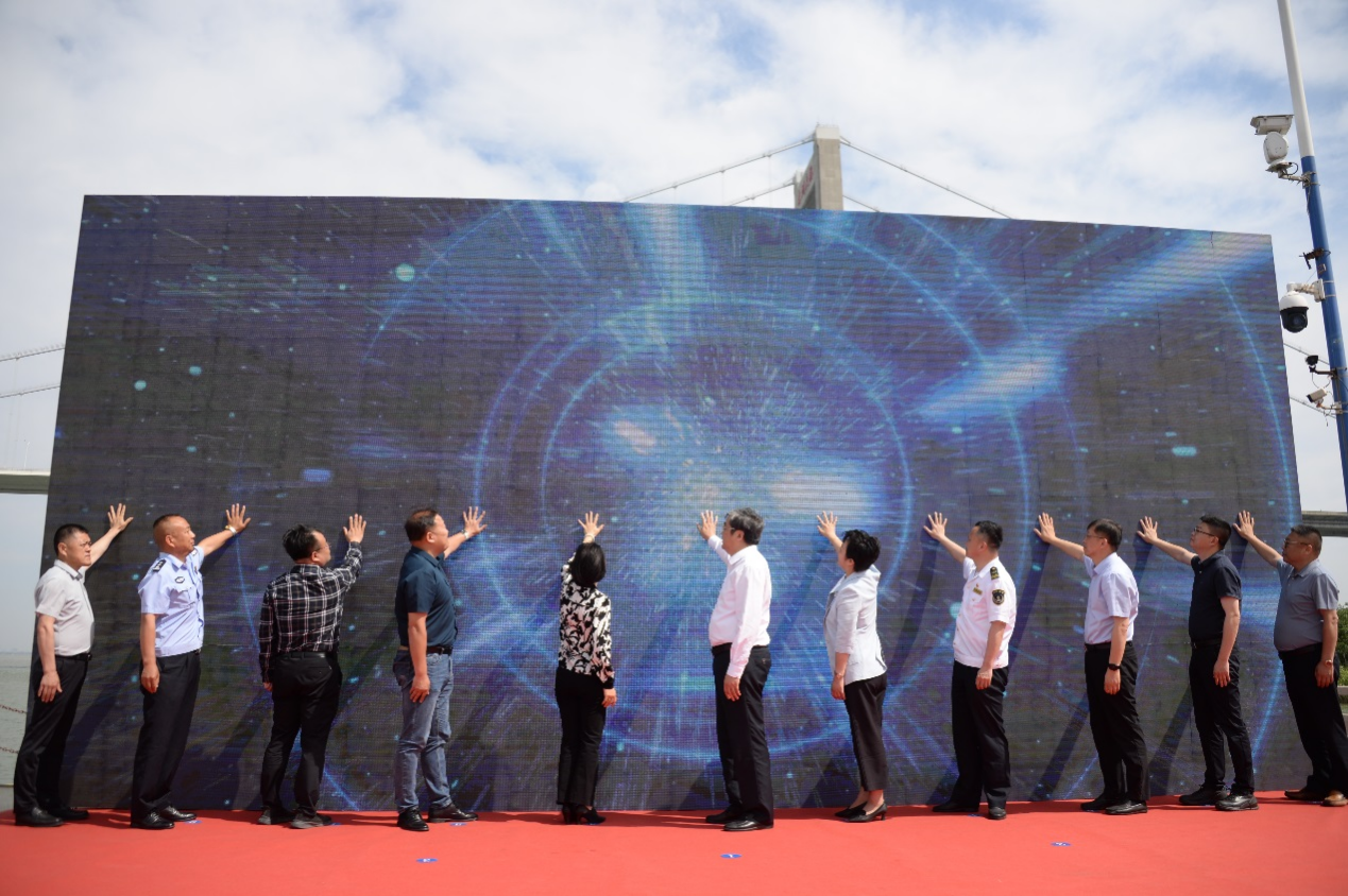与会领导共同按下触摸屏,无人机同步起飞,对长江沿岸进行立体巡查,用“智慧”监管构筑“绿色”屏障。