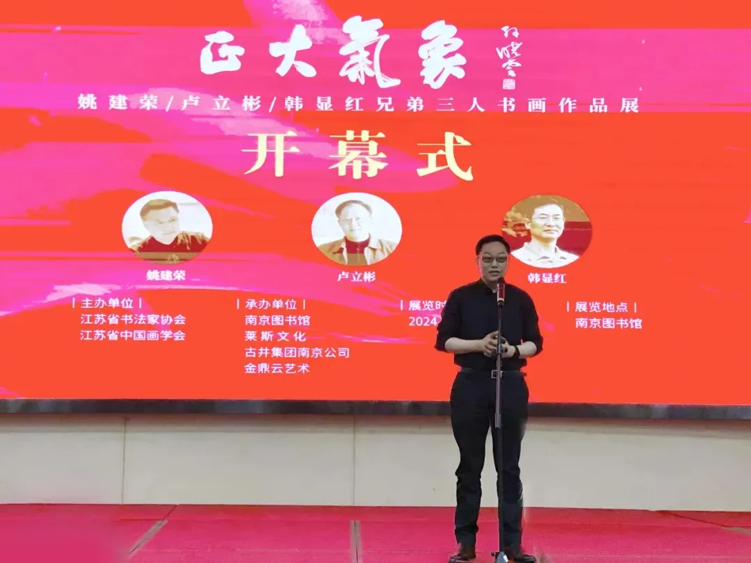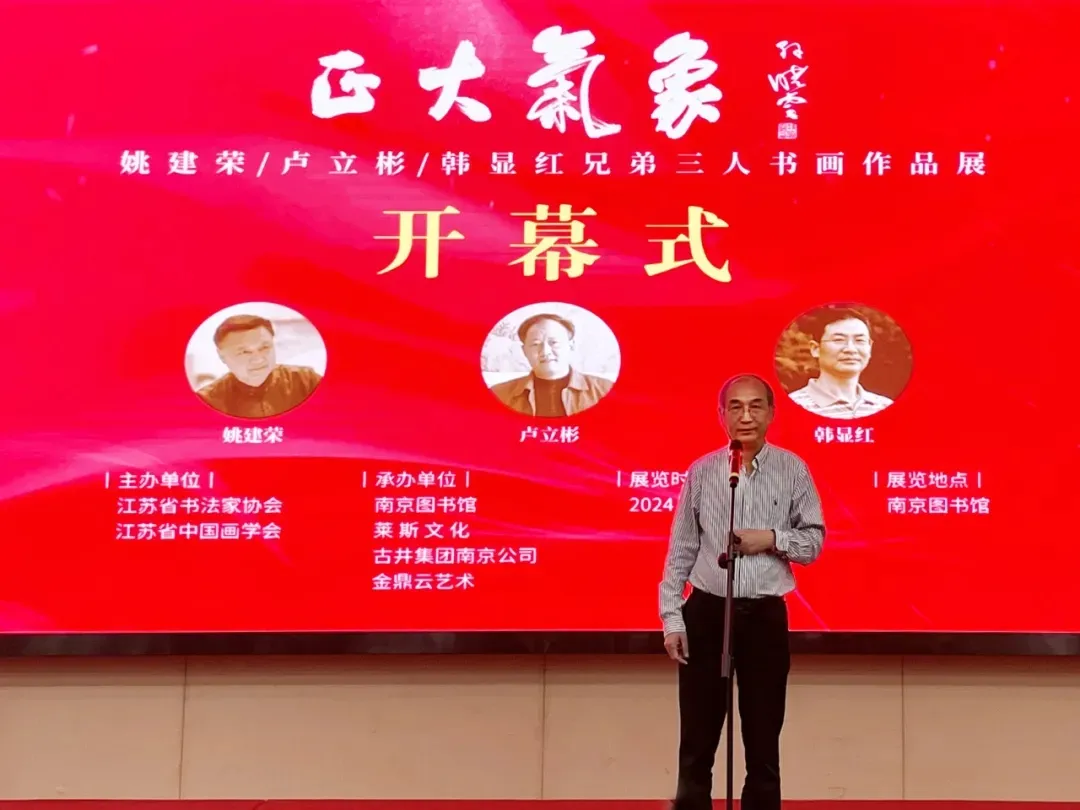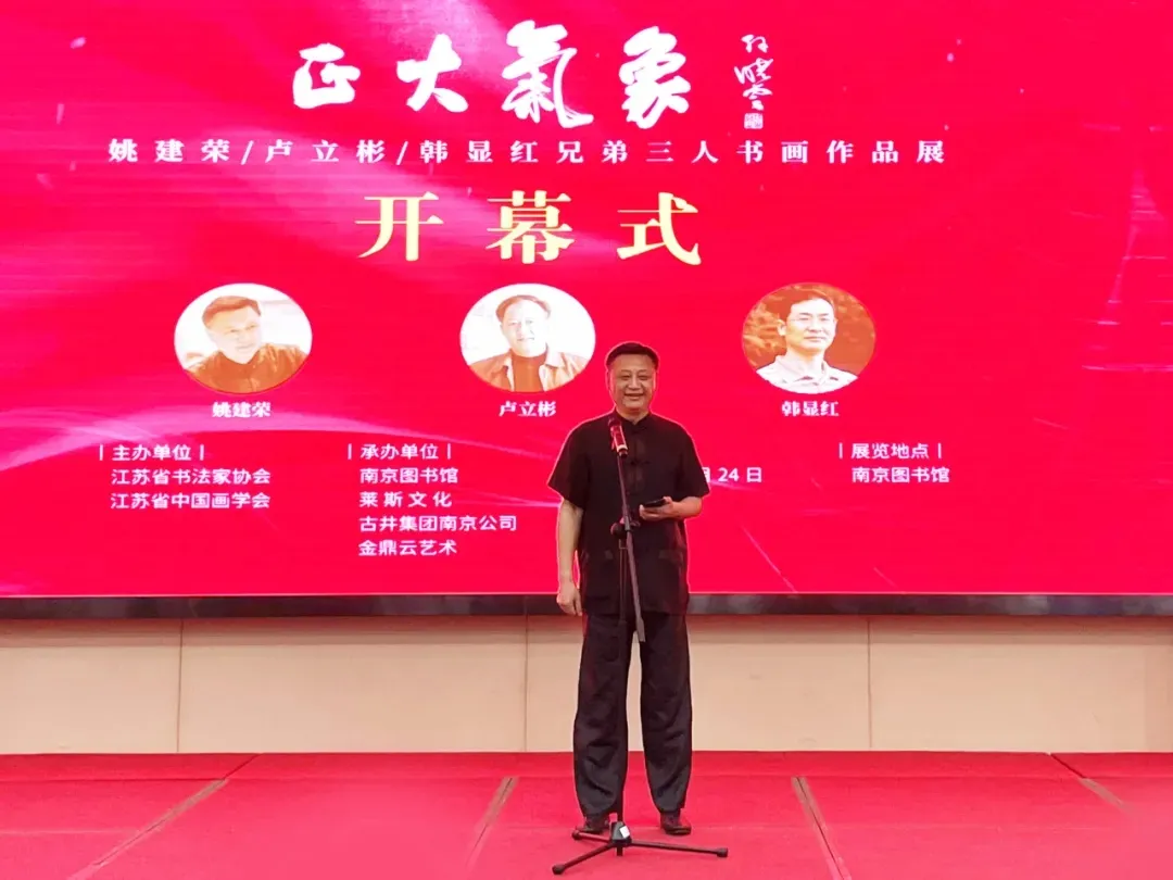 近日,“正大气象”——姚建荣、卢立彬、韩显红书画展在南京图书馆展览大厅开幕。