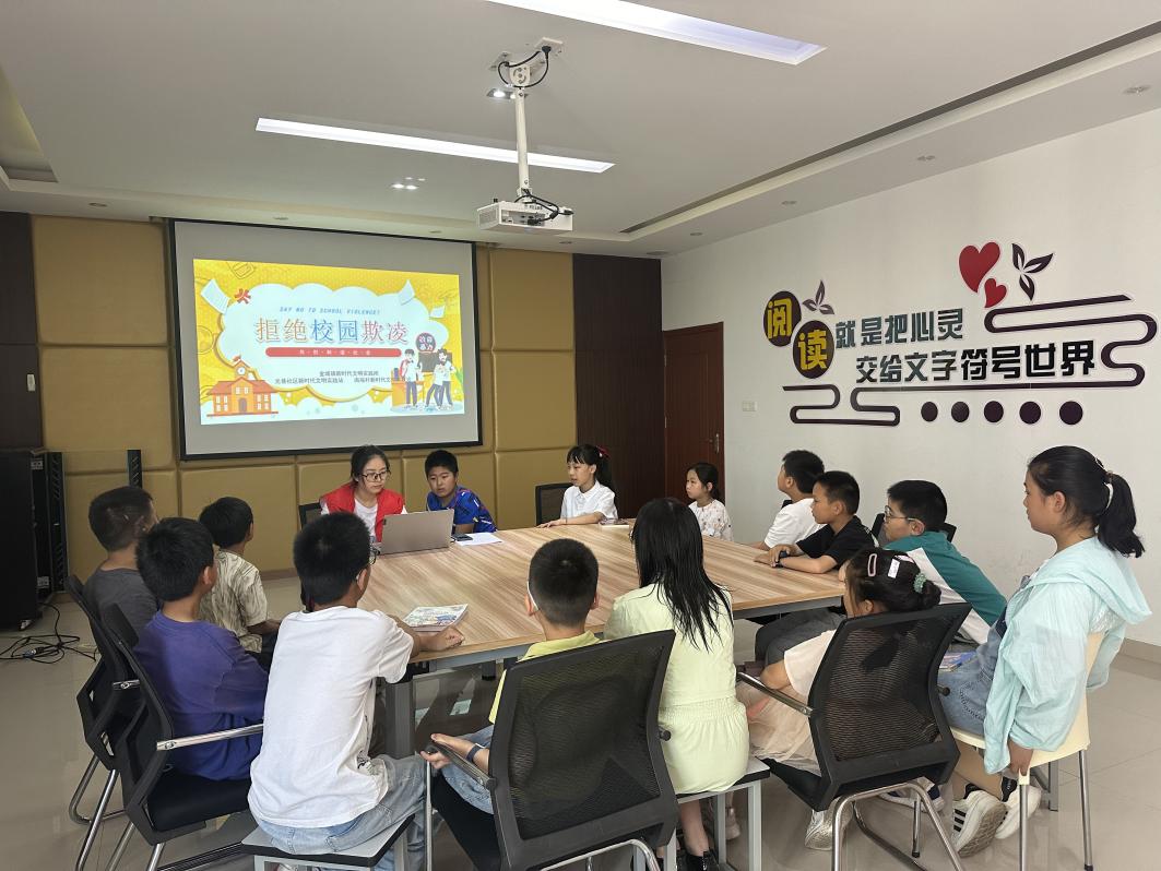 活动最后,志愿者们带领大家一起阅读《沉默的十三岁》《这不是真朋友》等反霸凌书籍,通过代入书中不同角色,帮助孩子们理解被霸凌学生的心理变化,培养大家的同情心和同理心;识别和预防隐形伤害,提升反霸凌意识,正确的分辨霸凌,保护自己等。同时关注外貌歧视、单亲家庭、心理健康等热点话题,和大家一起探讨未成年人成长中容易遇到的问题,呼吁家庭、学校、社会共同关注校园霸凌问题,捍卫受害者的权益,给孩子撑起全方位的保护伞,用爱为未成年人注入成长的希望和勇气。