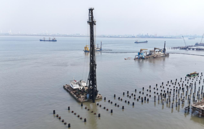 5月31日,随着最后一根钢管桩打入海底,连云港港灌河港区燕尾作业区液体散货泊位项目完成全部水上沉桩作业,为加快后续码头上部结构施工提供了工作面,标志着项目建设进入新阶段。