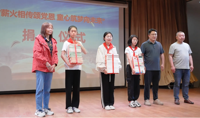 随后,镇商会联合关工委将精心挑选的《小兵张嘎》《红星照耀中国》《学习雷锋好榜样》等书籍赠送给孩子们,希望在镇阅读推广大使的带领下有更多的同学能够从书中汲取追梦力量,传承红色基因,快乐阅读、健康成长。镇妇联和团委也为辖区困境家庭儿童送上节日关爱和祝福,鼓励他们战胜困难,刻苦学习知识,锻炼强健体魄,用知识改变自己和家庭的命运。