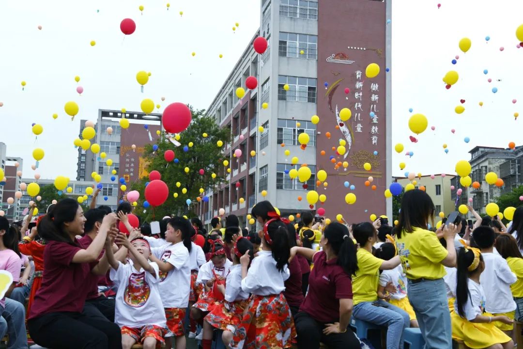 家长与学生们共同放飞梦想气球
