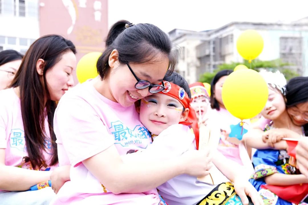 学生和家长们紧密相拥