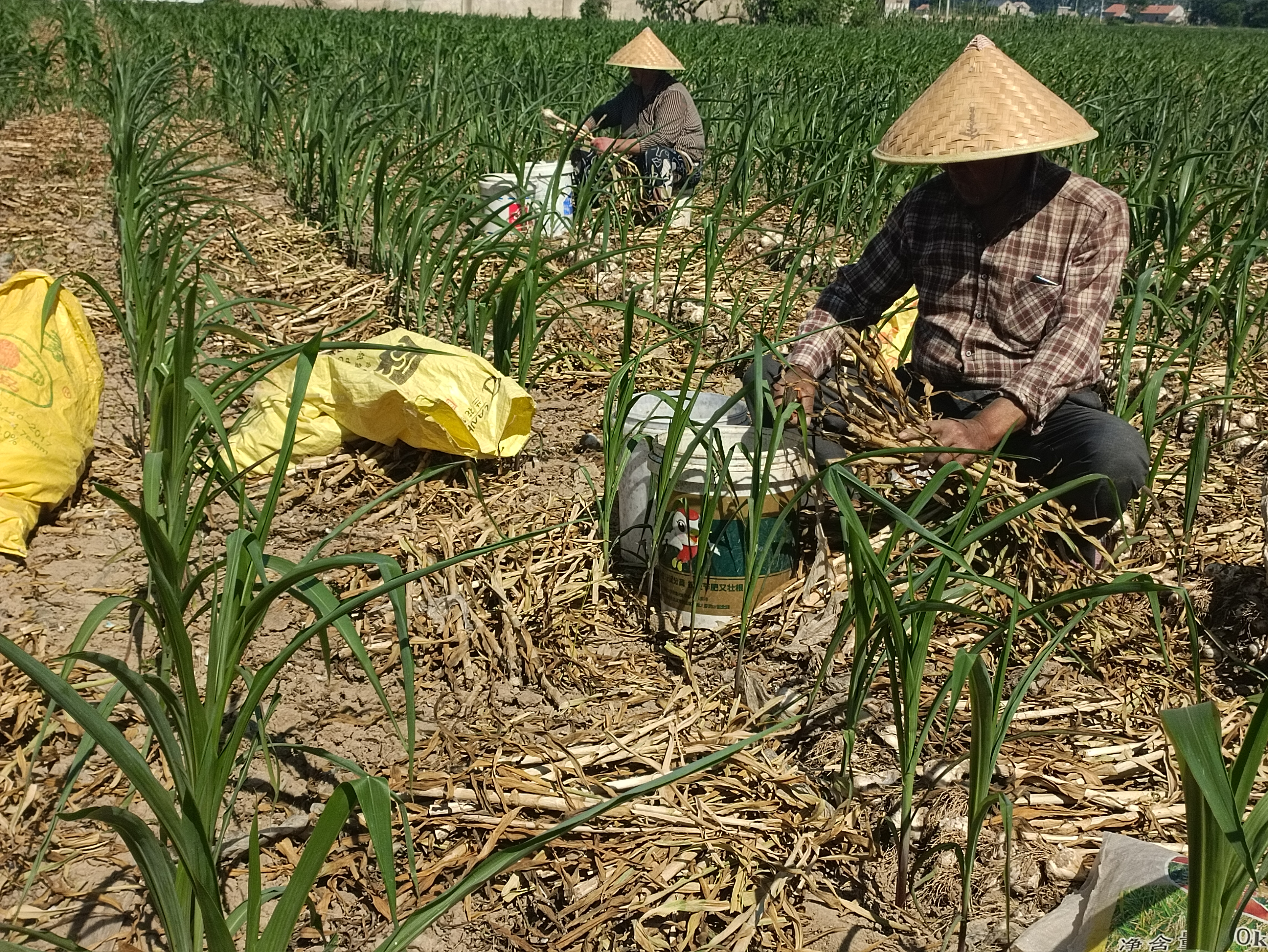 走进临海的乡村田野间随处可见蒜农劳作的忙碌身影,他们熟练地拔蒜、抖土、剪蒜,一把把带着泥土气息的新鲜大蒜被成排摆放在田地上。大蒜从种植到收获的程序很多,尽管非常辛苦,但他们干劲十足。
