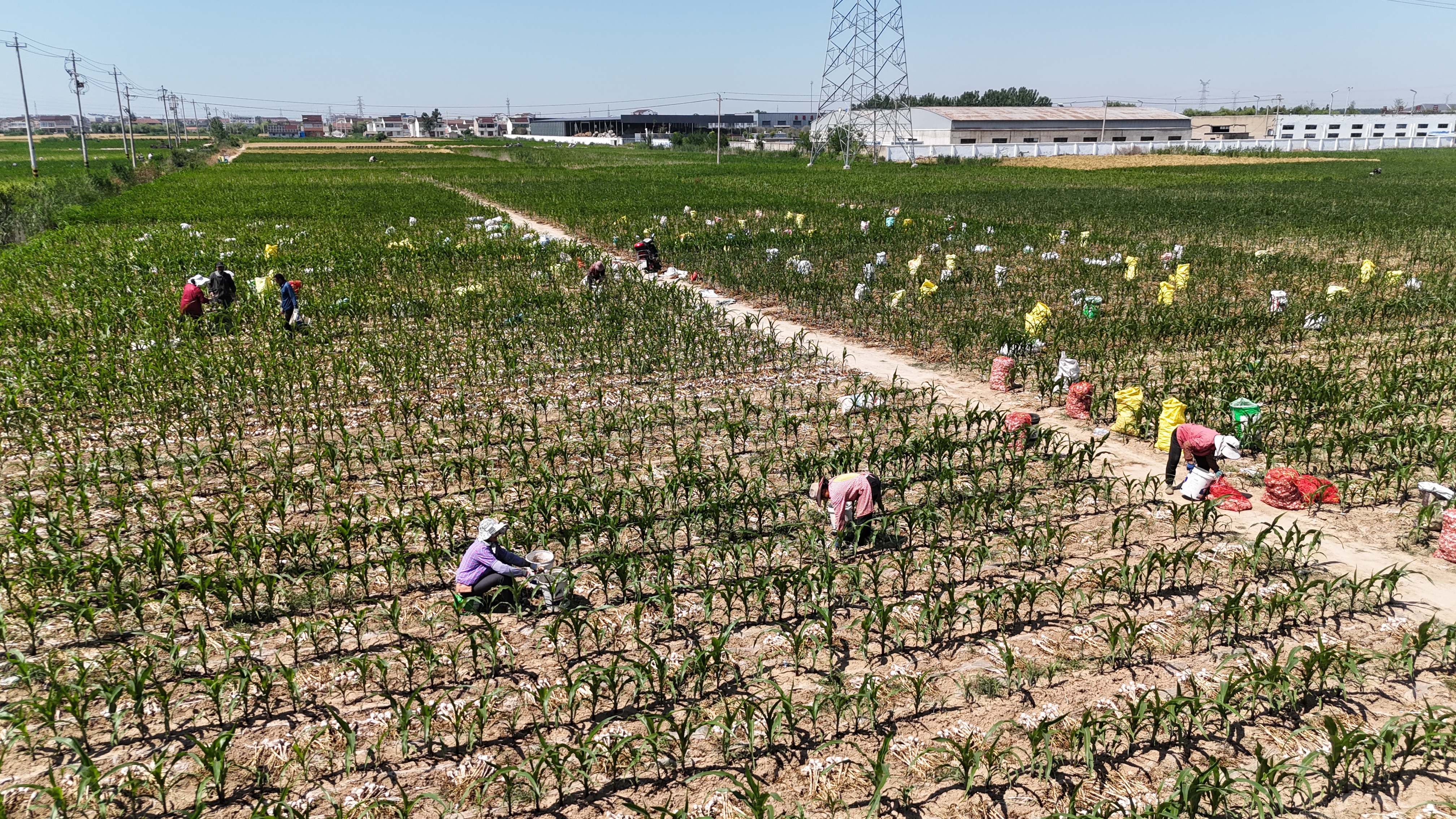 眼下正是大蒜头成熟收获的季节,在射阳县临海镇4万亩大蒜田地里,农民们享受着大蒜成熟增收带来的喜悦。