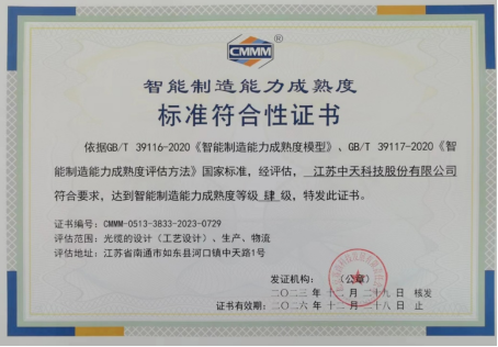 中天科技依据《智能制造能力成熟度模型》和《智能制造能力成熟度评估方法》两项国家标准,通过了智能制造能力成熟度四级标准符合性评估,获得行业最高级别认证。这标志着中天科技在智能制造方面达到了新高度,为线缆行业的智能化发展树立了标杆。(通轩)