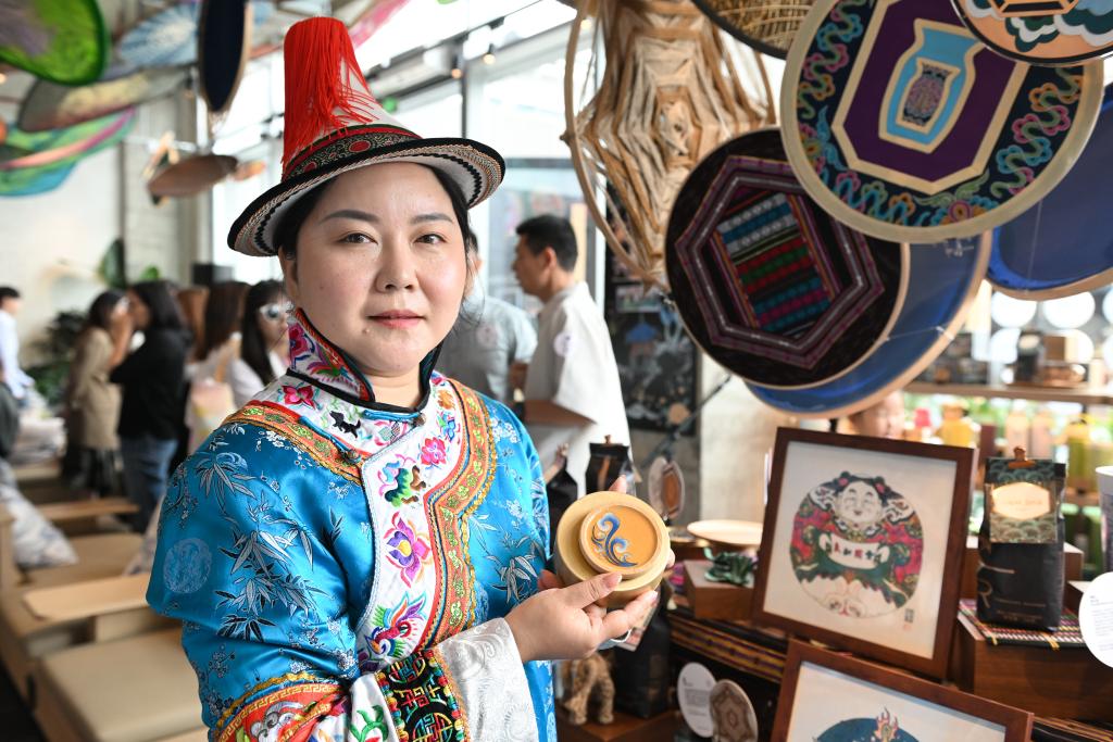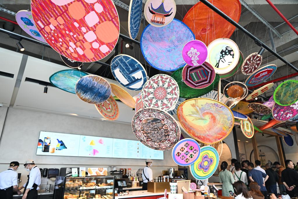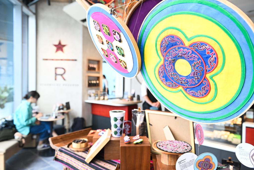 6月7日,非遗传承人的作品等被布置在星巴克苏州仁恒仓街非遗概念店。