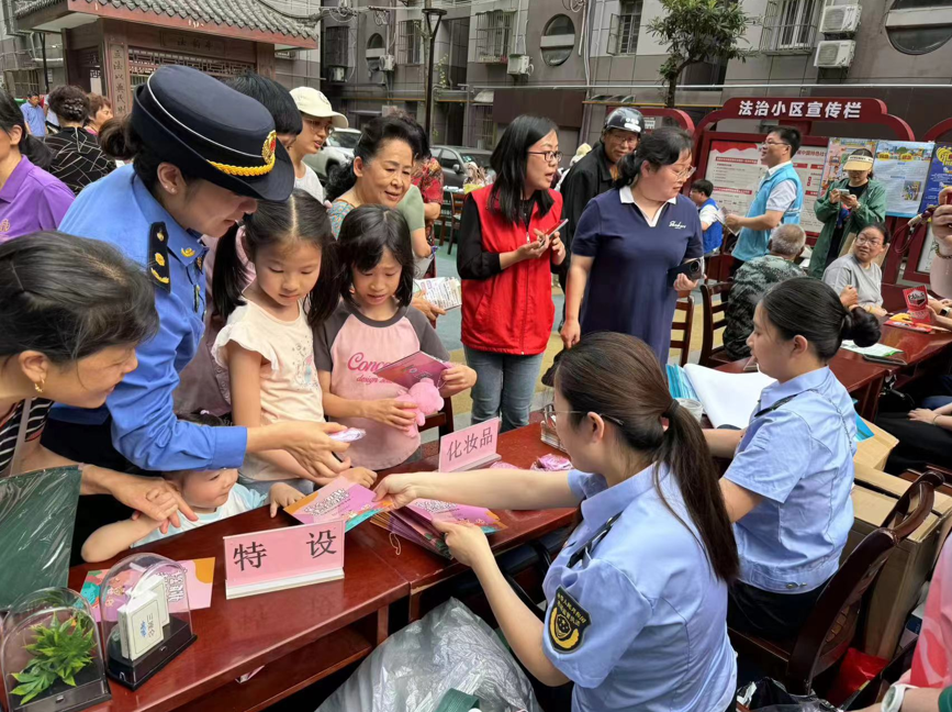 活动现场气氛热烈,参与者众多,城市治理志愿者们身穿蓝色志愿者马甲,手拿食品安全知识手册为居民们介绍了食品安全的基础知识,包括食品加工、存储、销售等过程中食品卫生及食品安全。