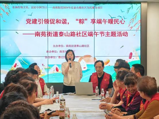 6月7日上午,南京市建邺区南苑街道泰山路社区新时代文明实践站开展了“党建引领促和谐,‘粽’享端午暖民心”主题活动。