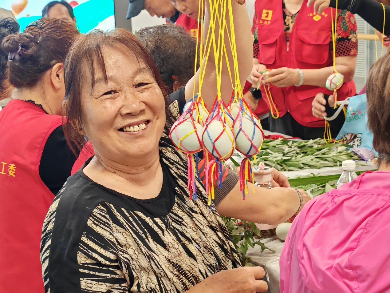 在接下来的互动环节,工作人员用生动的语言,从端午节的历史渊源、传统习俗、文化价值等方面进行详细阐述,并进行趣味问答,让大家深入了解传统文化的独特魅力。随后,志愿者还带大家一起编制鸭蛋兜、制作中药香囊,让社区居民感受到互相协助的邻里情。